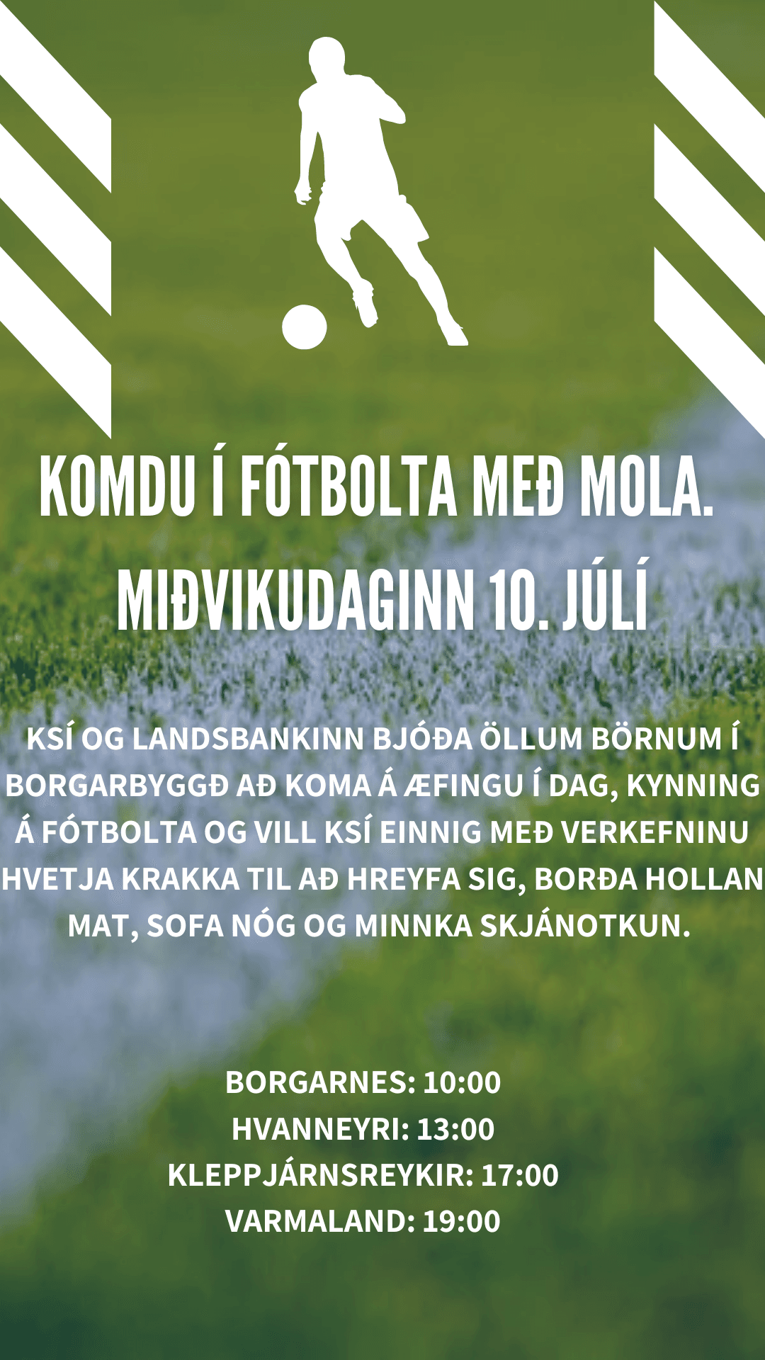 KSÍ og Landsbankinn bjóða öll börn í Borgarbyggð að koma á æfingu í dag.