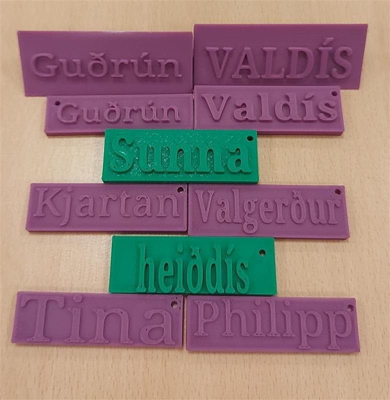 Nemendur í 5.-6. bekk á Kleppjárnsreykjum bjuggu til lyklakippur og nafnspjöld í Tinkercad og prentuðu svo út í 3D prentaranum.