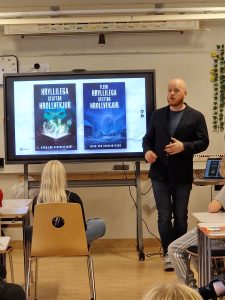 Ævar Þór Benediktsson kom í heimsókn í Grunnskóla Borgarfjarðar og hitti nemendur á miðstigi. Hann fór yfir þær bækur sem hann hafði gefið út og sagði svo frá þremur nýjum bókum sem eru væntanlegar á næstu mánuðum. Bækurnar Skólastjórinn, Þín eigin saga Gleðileg jól og Þín eigin saga Piparkökuborgin. Ævar las svo upp úr bókinni Skólastjórinn fyrir nemendur sem var afar spennandi og skemmtileg. Bókin fjallar um 12 ára strák sem tók við stöðu skólastjóra í skólanum sínum. Nemendur áttu auðvelt með að setja sig í þau spor og komu margir með hugmyndir að breytingum sem þeir myndu gera í skólanum ef þeir yrðu skólastjórar. Eftir skemmtilegan lestur og umsræður fengu allir nemendur á miðstigi bókamerki frá Ævari að gjöf.