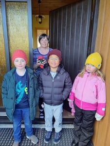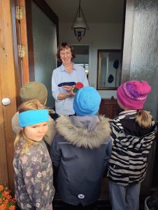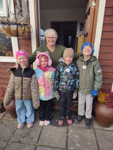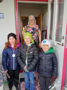 Krakkarnir fóru svo öll saman og gáfu eldri borgurum á Hvanneyri sutlukrukku til að gæða sér á í haustveðrinu.