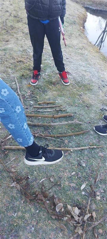 Nemendur í jólavali fóru og sóttu sér efnivið í jólatré sem þau ætla að setja á veggi skólans í desember.
