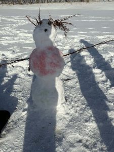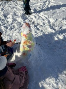 Nemendur á Varmalandi nutu sín vel í útikennslu á dögunum þegar þeir unnu saman að skapandi verkefni í snjónum. Börnunum var skipt í litla hópa og fengu það verkefni að búa til snjókarla og lita snjóinn með ýmsum litum.