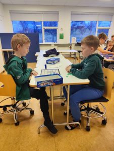 Eldri kenna yngri að spila í Hringekju á Hvanneyri. Nemendur 4. og 5. bekkjar kenndu nemendum 1. og 2. bekkjar á ýmiskonar spil í spilastund.