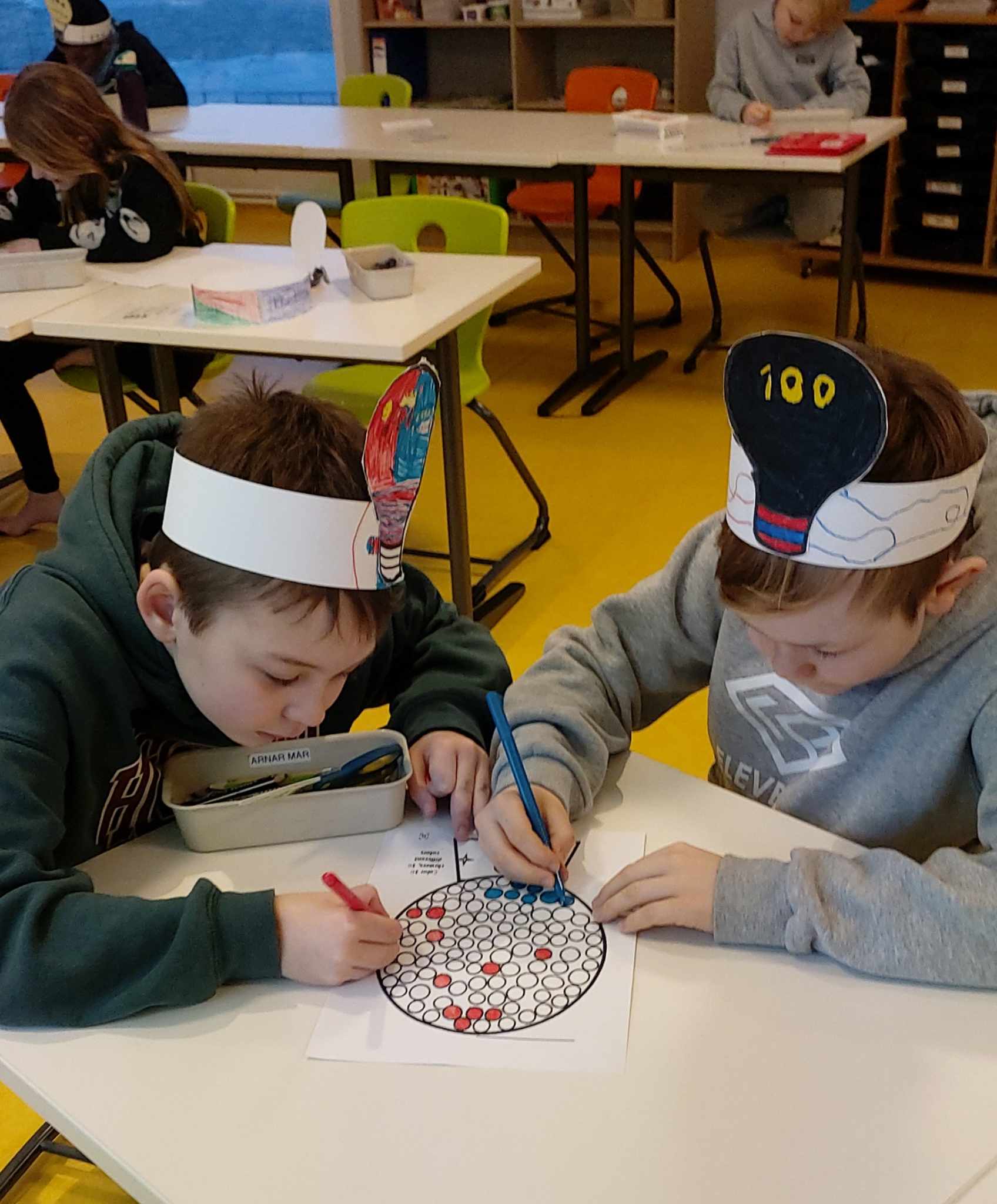 Í dag héldu 1., 2. og 3. bekkur upp á að 100 skóladagar eru liðnir frá því skólinn var settur í haust. Leystu börnin ýmis verkefni saman, spiluðu og héldu smá veislu þar sem veitingar voru í boði.