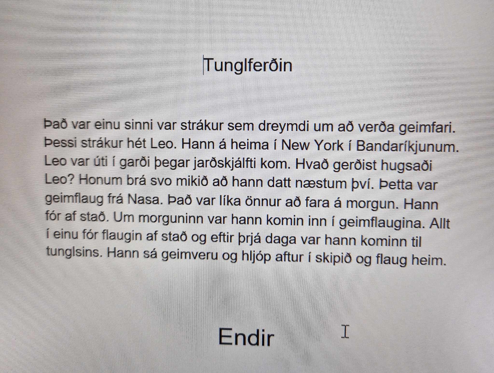 Nemendur 3. bekkjar hafa að undanförnu verið að fræðast um himingeiminn og vinna fjölbreytt verkefni sem samþættist við íslensku, náttúrfræði, samfélagsfræði og upplýsingamennt. Áherslan var á lesskilning, ritun, kyn orða, eintölu og fleirtölu. Verkefnin voru unnin í anda byrjendalæsis og voru ýmist hópa-, para- eða einstaklingsverkefni. Einstaklingsverkefnin voru unnin í stöðvavinnu þar sem nemendur gátu valið í hvaða röð þau unnu verkefnin.