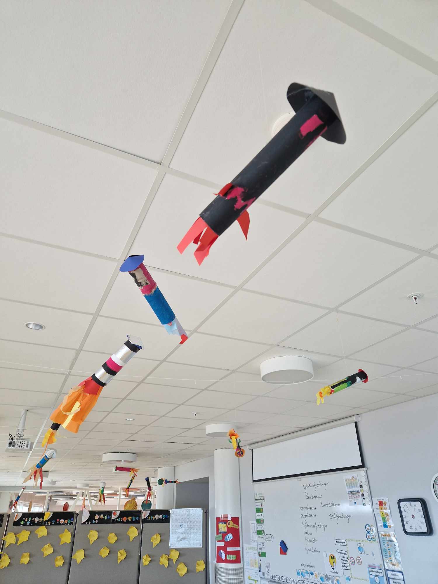 Ásamt þessu voru föndraðar eldflaugar, geimfarar og plánetumynd. Nemendur lærðu og skrifuðu upp ljóð, skrifuðu upp texta sem þeir myndgerðu. Einnig sömdu þeir “geimsögu” í heimanámi sem skilað var á tölvutæku formi.
