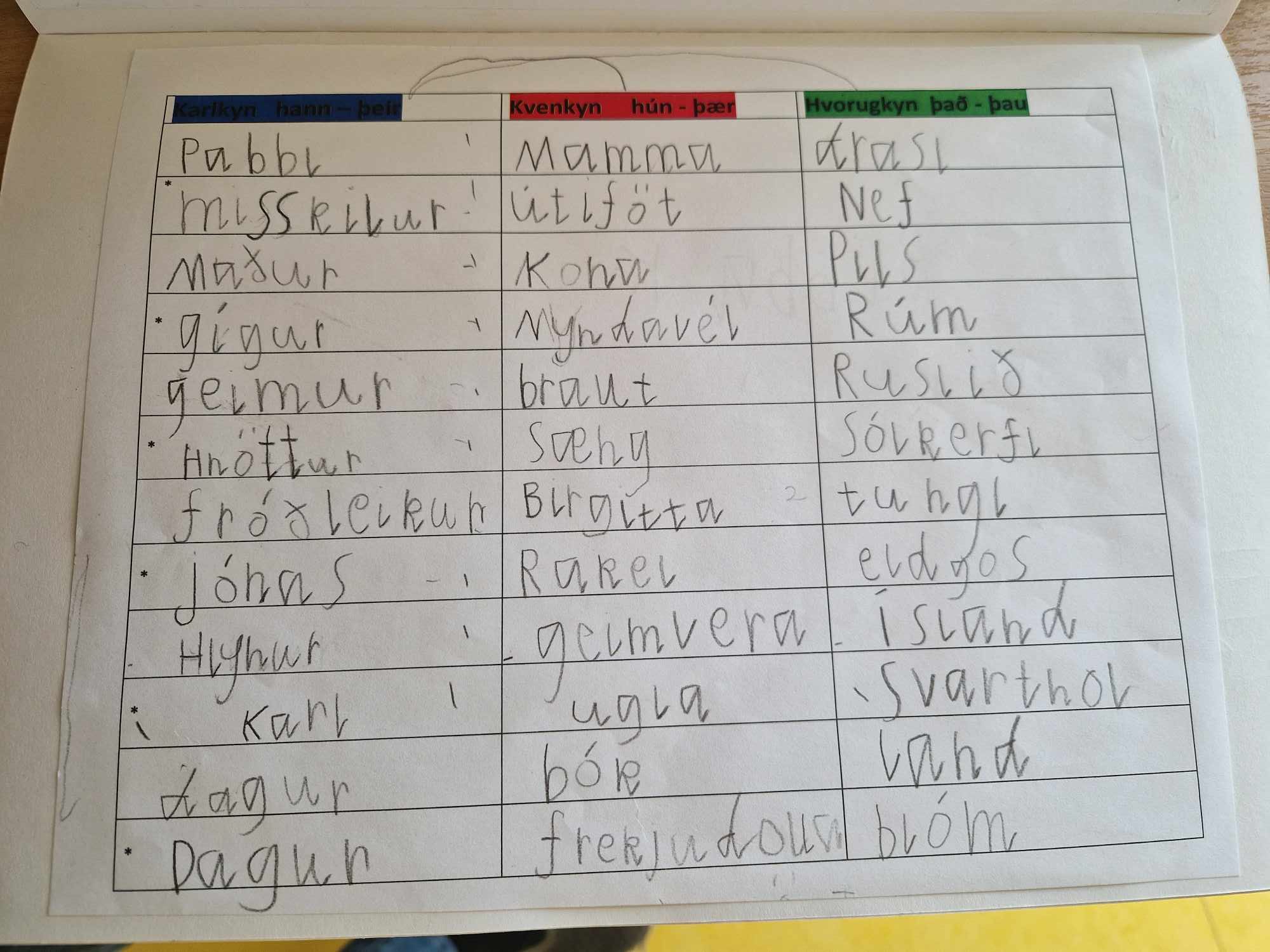 - Kyn nafnorða