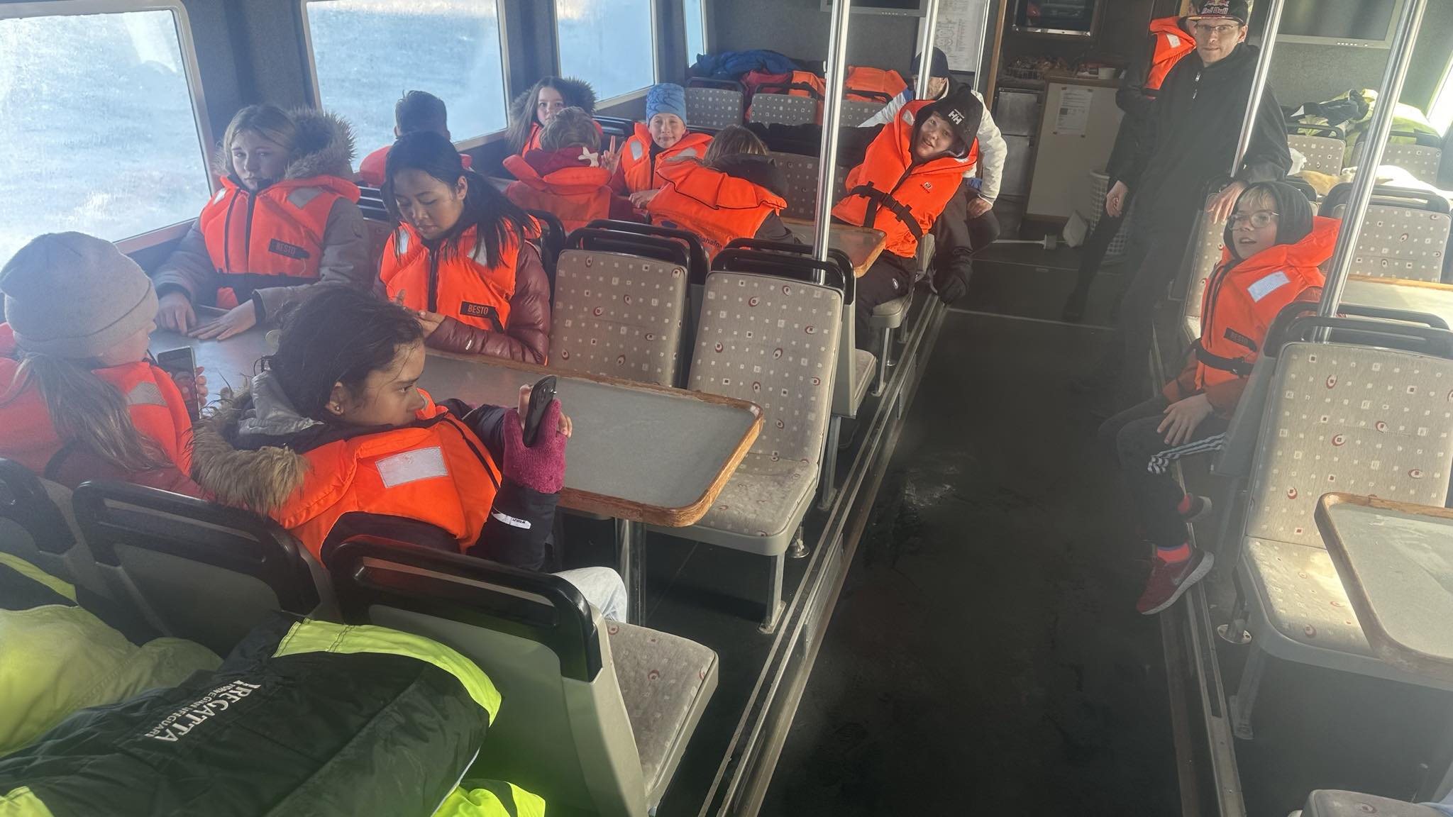 Sjöundi bekkur í Grunnskólanum í Borgarnesi brá sér í betri fötin og skellti sér til Reykjavíkur þriðjudaginn 30. apríl í boði Faxaflóahafna. Okkur var boðið í sjóferð um sundin blá, en það er fræðsluferð sem grunnskólabörnum er boðið í. Okkur til mikillar ánægju breyttist ferðin óvænt því á vegi okkar sáum við hrefnur fyrir utan höfnina sem vakti mikla kátínu krakkanna. Síðan var siglt að Lundey en þar var hægt að sjá lunda, súlur, teistur og rítu svo eitthvað sé nefnt.