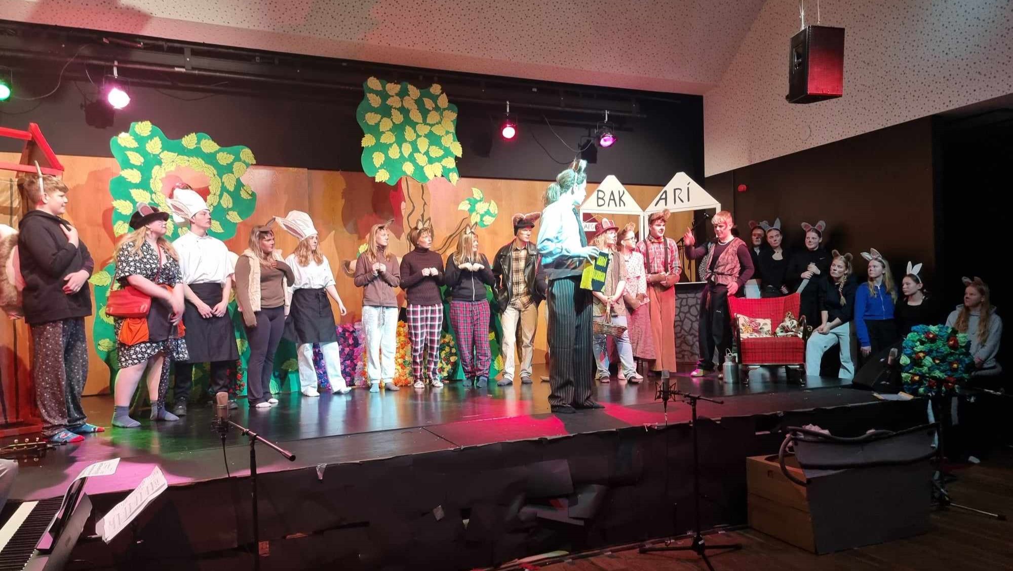 Síðustu tvær vikur hafa nemendur verið að undirbúa og æfa fyrir árshátíð skólans sem fór fram í Hjálmakletti í gær. Það er mikil vinna sem fer fram fyrir svona sýningu og hafa allir einhverju hlutverki að gegna þó svo það fari kannski lítið fyrir þeim á sjálfu sýningarkvöldinu.
