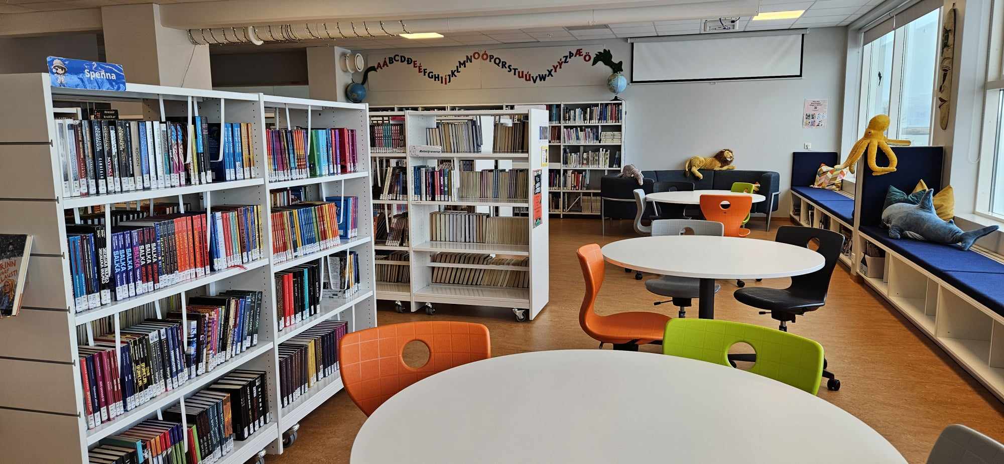 Myndir sem fylgja þessari frétt eru frá bókasafninu okkar þar sem nemendur eiga sér smá athvarf til að stíga út úr skarkalanum sem stundum er á göngum skólans.