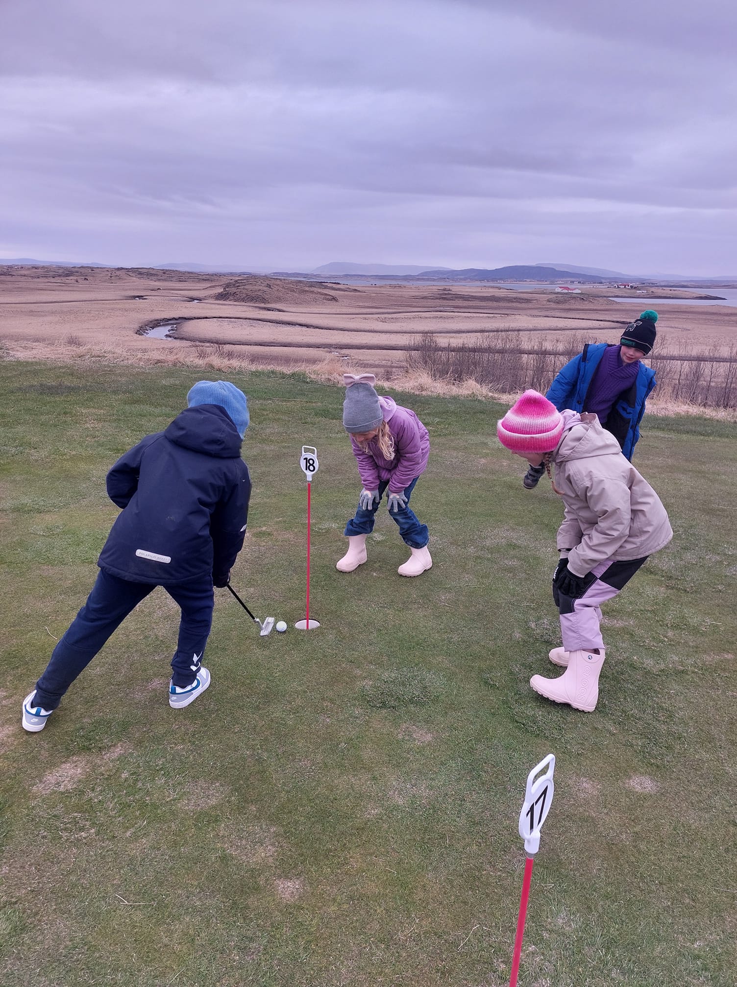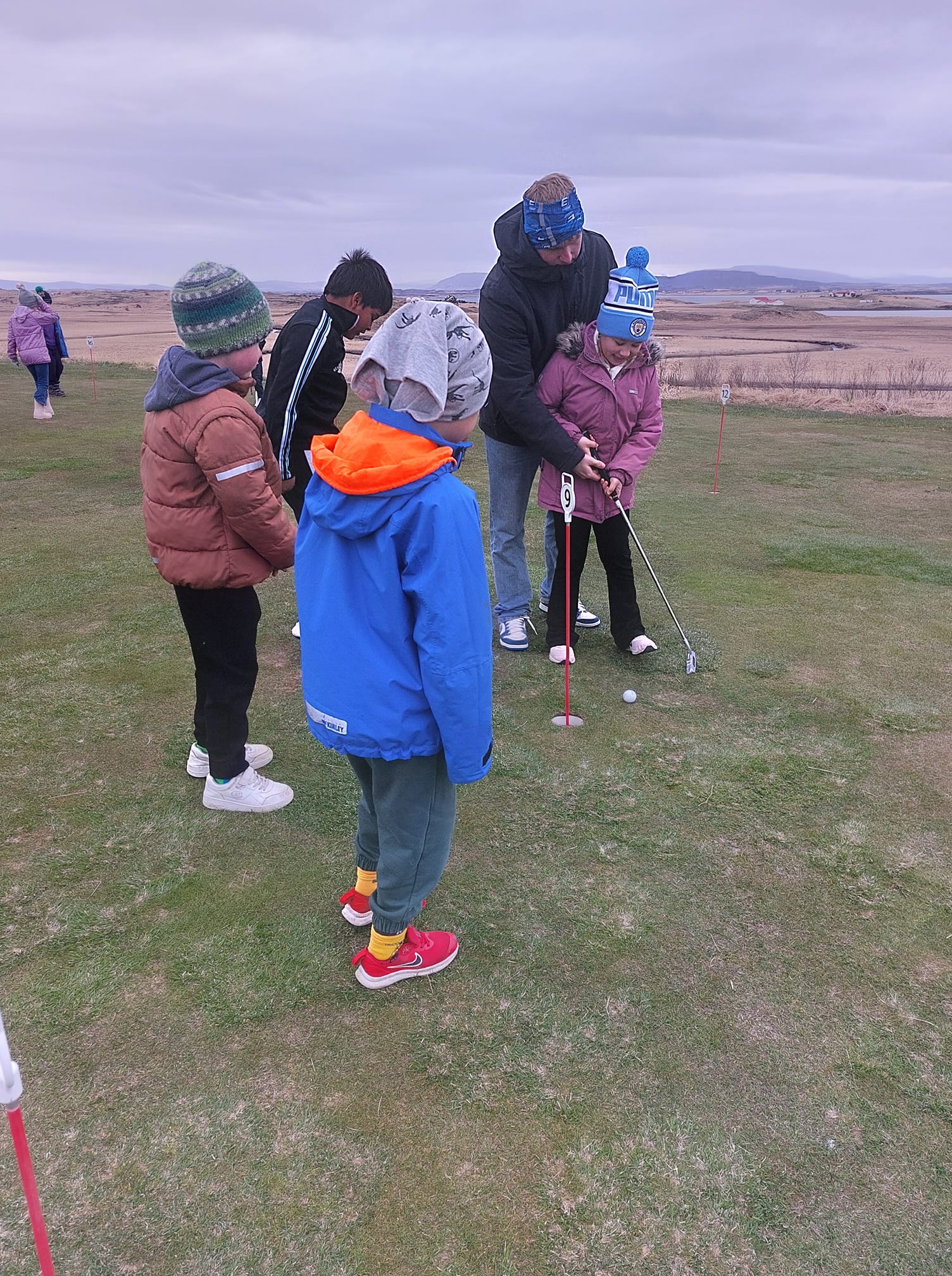 Hverju stigi var skipt upp í hópa þar sem farið var yfir mismunandi grunnþætti og öryggi í golfi. Allir fengu að prófa “Drive” í básunum, “chippur” á æfingasvæðinu og “pútt” á púttvellinum undir handleiðslu íþróttakennara og fulltrúa golfklúbbsins. Það sáust glæsilegir taktar og greinilega margir mjög efnilegir golfarar í hópnum.