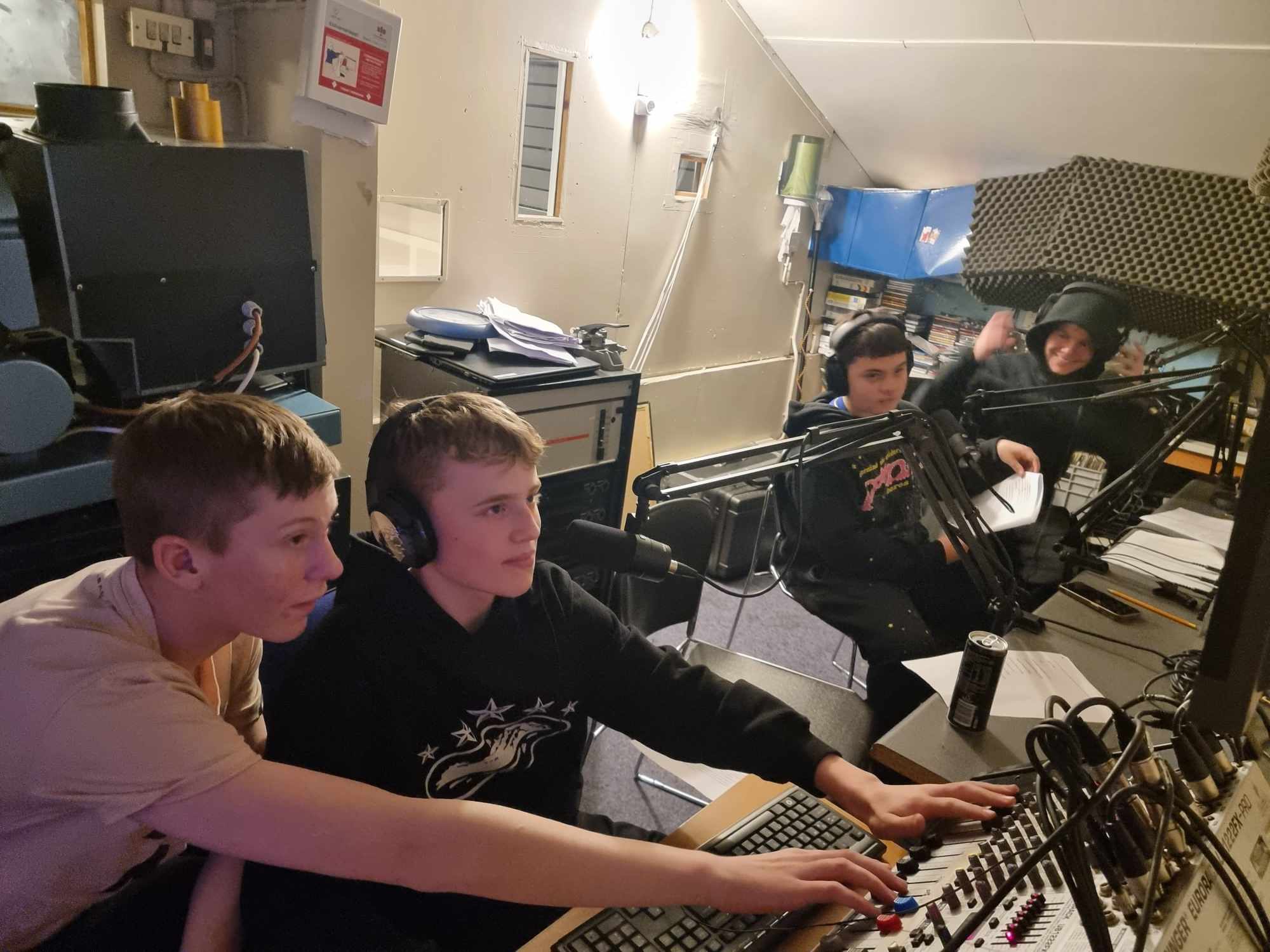 Meðfylgjandi myndir eru af tæknimönnum við störf og frá dagskrárliðnum Bæjarmálin í beinni.