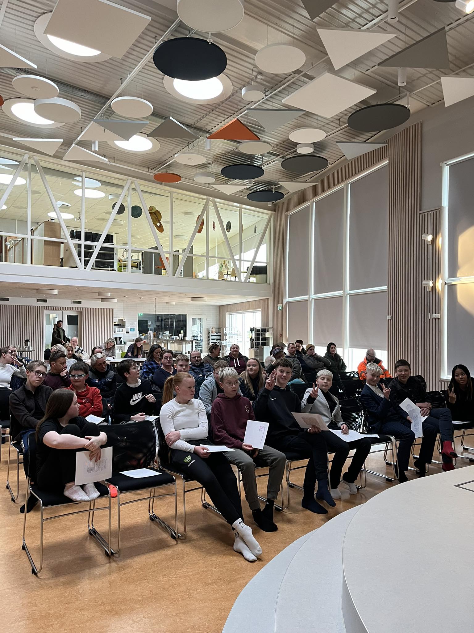 Litla upplestrarkeppnin í 7. bekk var haldin í gær. Keppendur stóðu sig mjög vel. Þeir lásu ljóð að eigin vali og kafla úr bókinni „Af hverju ég ?“ eftir Hjalta Halldórsson. Í 1. sæti varð Heiðrún Inga Jóngeirsdóttir, í 2. sæti Lísa Camila Carneiro Valencio, í 3. sæti Reynir Antonio Þrastarson og í 4. sæti Timoté Chaverot. Dómarar voru Finnbogi Rögnvaldsson, Þórunn Kjartansdóttir og Guðrún Vala Elísdóttir. Stóra upplestrarkeppnin verður haldin í Auðarskóla 16. apríl næstkomandi. Sigurvegarar í keppninni í gær munu verða fulltrúar skólans okkar þar. Foreldrar stóðu fyrir Pálínuboði og kunnum við þeim bestu þakkir fyrir það.
