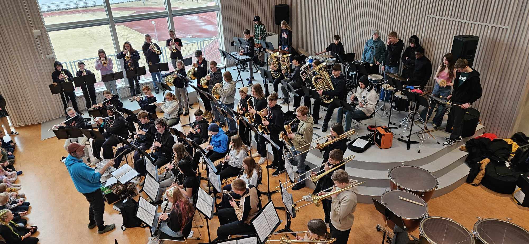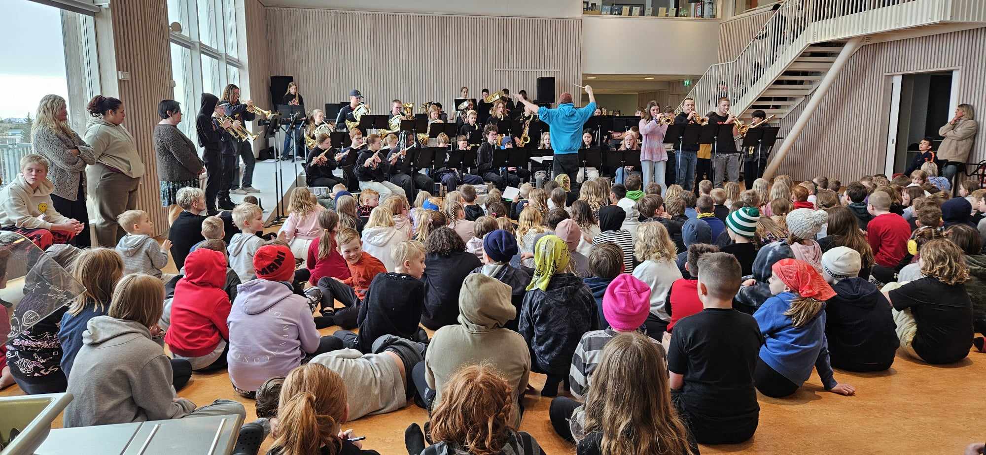 Föstudaginn 19. apríl heimsótti okkur Skólahljómsveit Vesturbæjar og Miðbæjar og spiluðu krakkarnir nokkur lög í Salnum. Í skólahljómsveitinni eru grunnskólanemendur úr skólum í vesturbæ og miðbæ Reykjavíkur og voru þau stödd í Borgarnesi í skólahljómsveitabúðum. Mátti heyra af þeim vítt og breytt um héraðið þar sem þau fóru um og spiluðu fyrir leikskóla, skóla og aðra gesti.